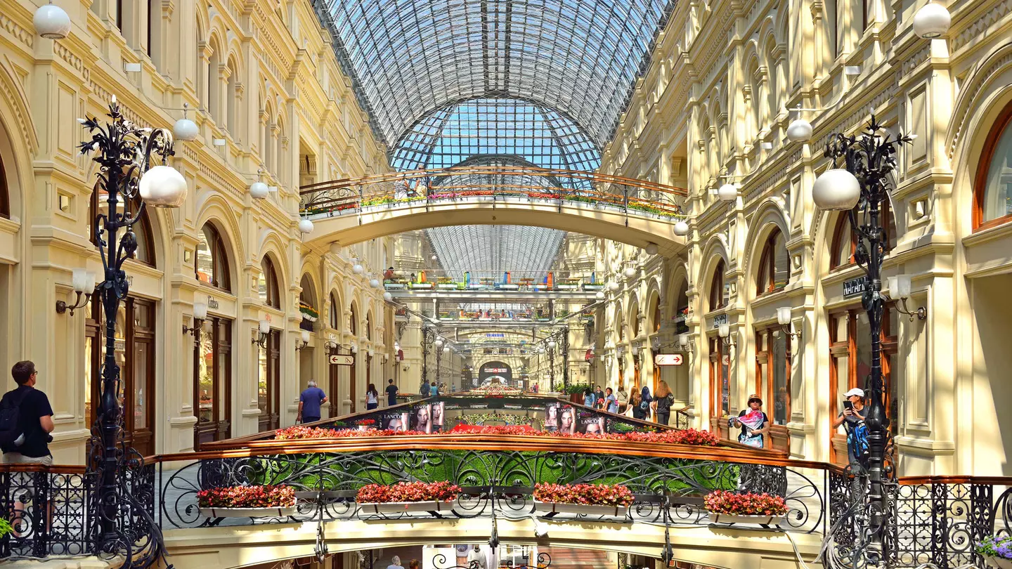While shopping in GUM department store be sure to check out its famous glass roof. Popova Valeriya / Shutterstock