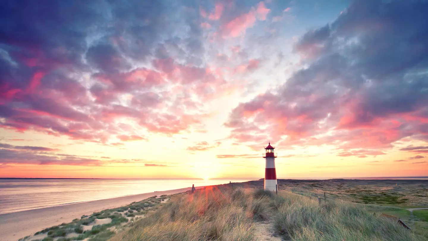 Sunrise at lighthouse List East on Sylt. Jenny Sturm / Shutterstock
