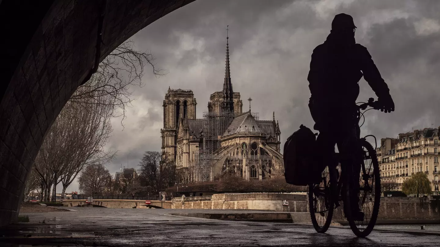 Cycling along the Seine near Notre Dame, Paris. Benjamin Volot/Getty Images