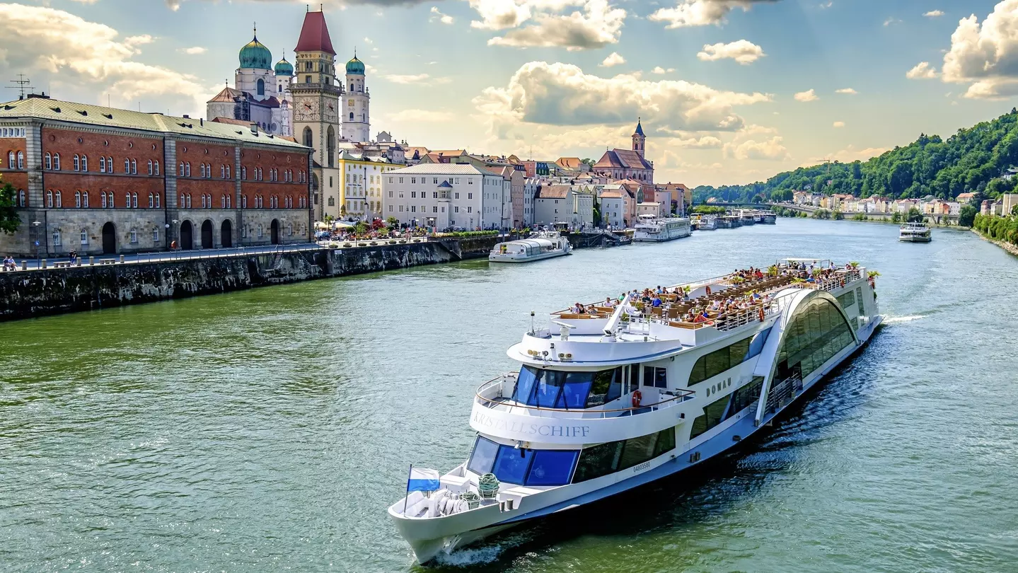 A cruise ship passes by Passau, Bavaria, on the Danube River. FooTToo/Shutterstock