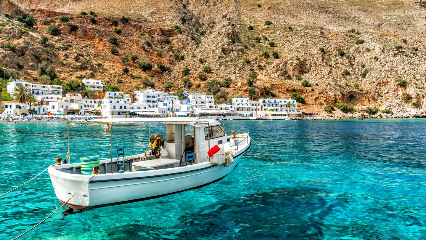 The journey to Crete's best beaches starts with a twisting drive through the mountains and down to the charming little port town of Hora Sfakion. As you loop around bend after bend, panoramic views across the Libyan Sea show off the rocky Cretan coast in all its filigreed glory.