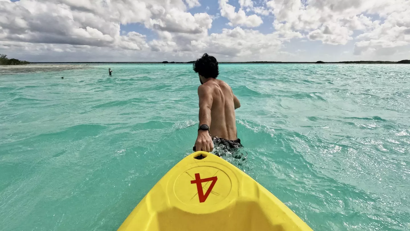 A kayaker in Laguna Bacalar. Ghecipol/Shutterstock