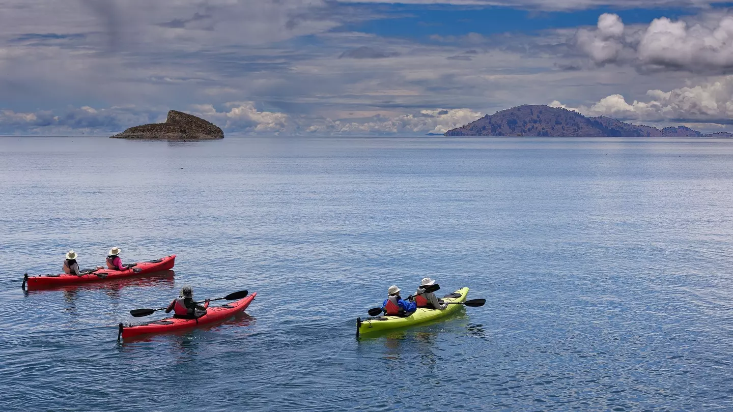 Sea kayaking on Lake Titicaca, Peru. BETO SANTILLAN/Shutterstock