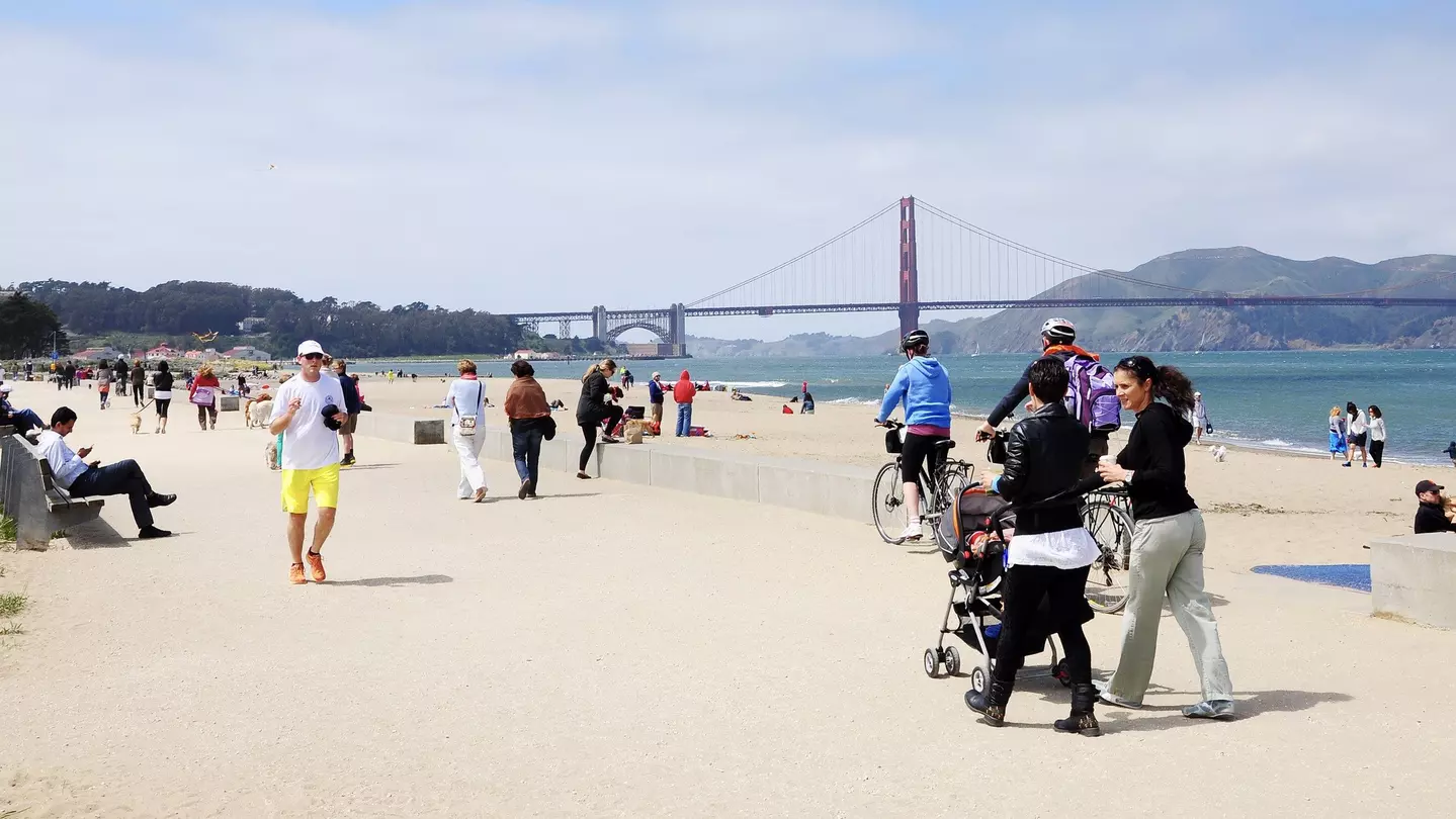 At mile-long Baker Beach, you can take in the spectacular views of the Golden Gate. Crowds descend on weekends, especially on fog-free days, so arrive early. For nude sunbathing, head to the northern end. Mind the currents and the c-c-cold water.