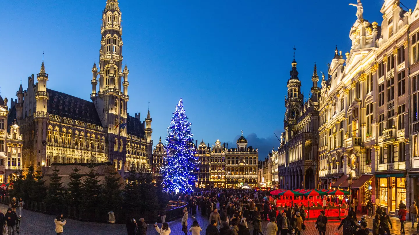 The Grand Place holiday market. Matyas Rehak/Shutterstock
