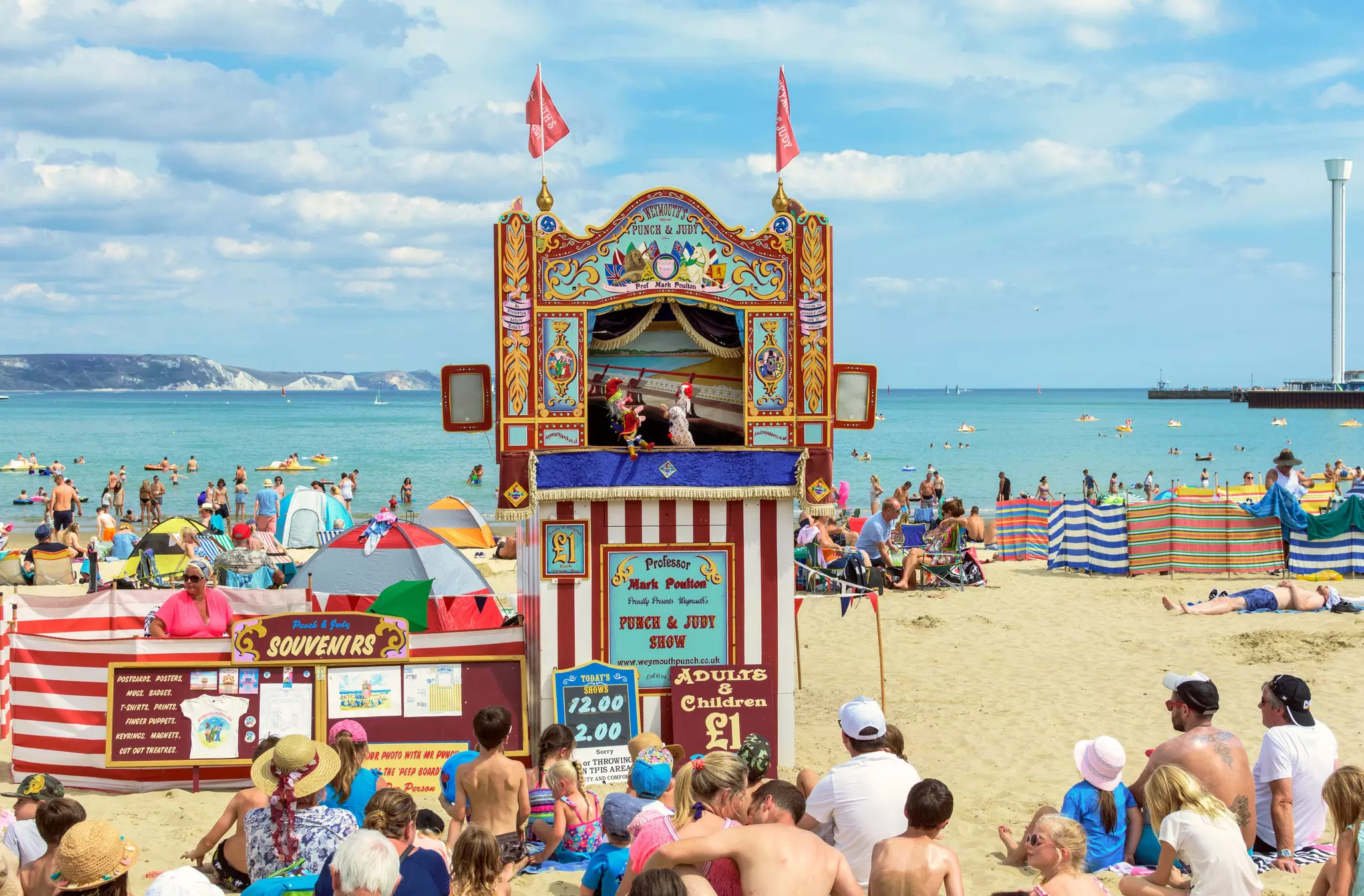 Vividly colorful, cartoonishly violent, and riffing on Punchinello stories imported from Italy in the 1660s, a traditional Punch and Judy show was once an integral part of the English seaside experience. With changing tastes, the tradition is vanishing fast, but you can still see a classic show (with some of the outdated themes removed) at Broadstairs’ Viking Bay, Weymouth Beach, and Dorset’s Swanage Beach.