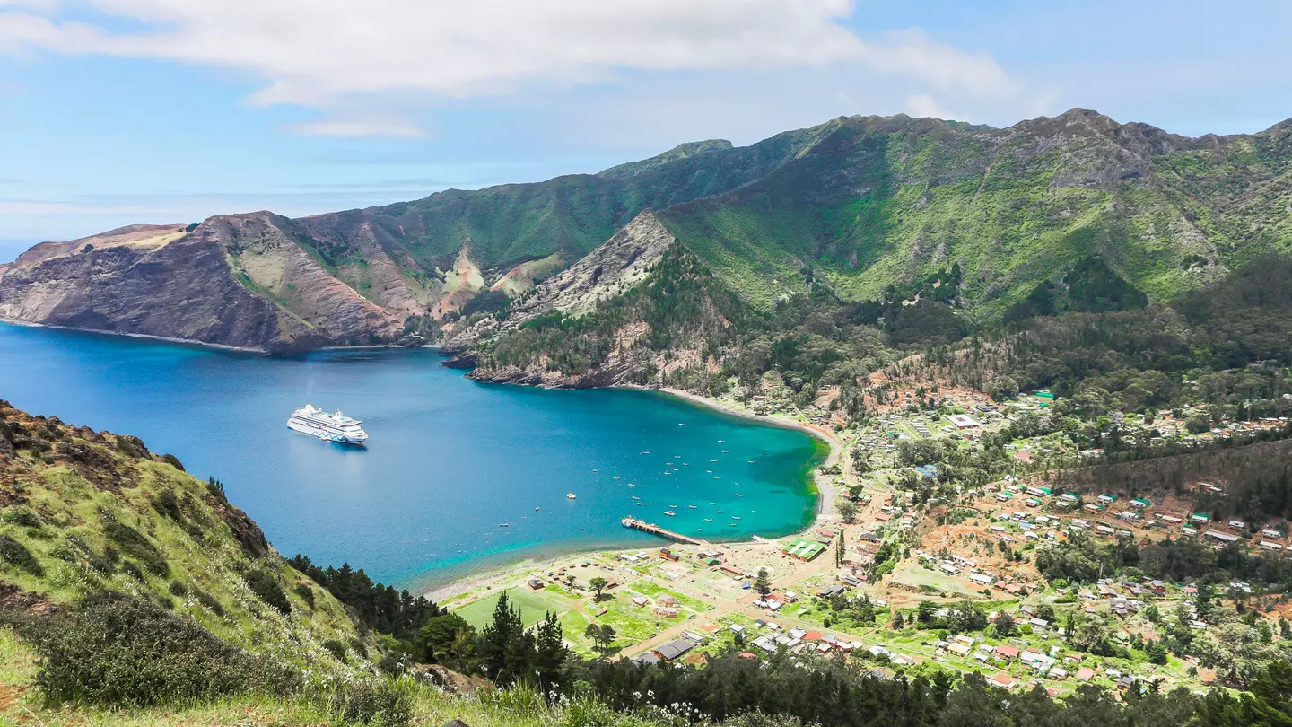 Bahía Cumberland and San Juan Bautista, the only town on Isla Robinson Crusoe. Sarah Spiess/Shutterstock
