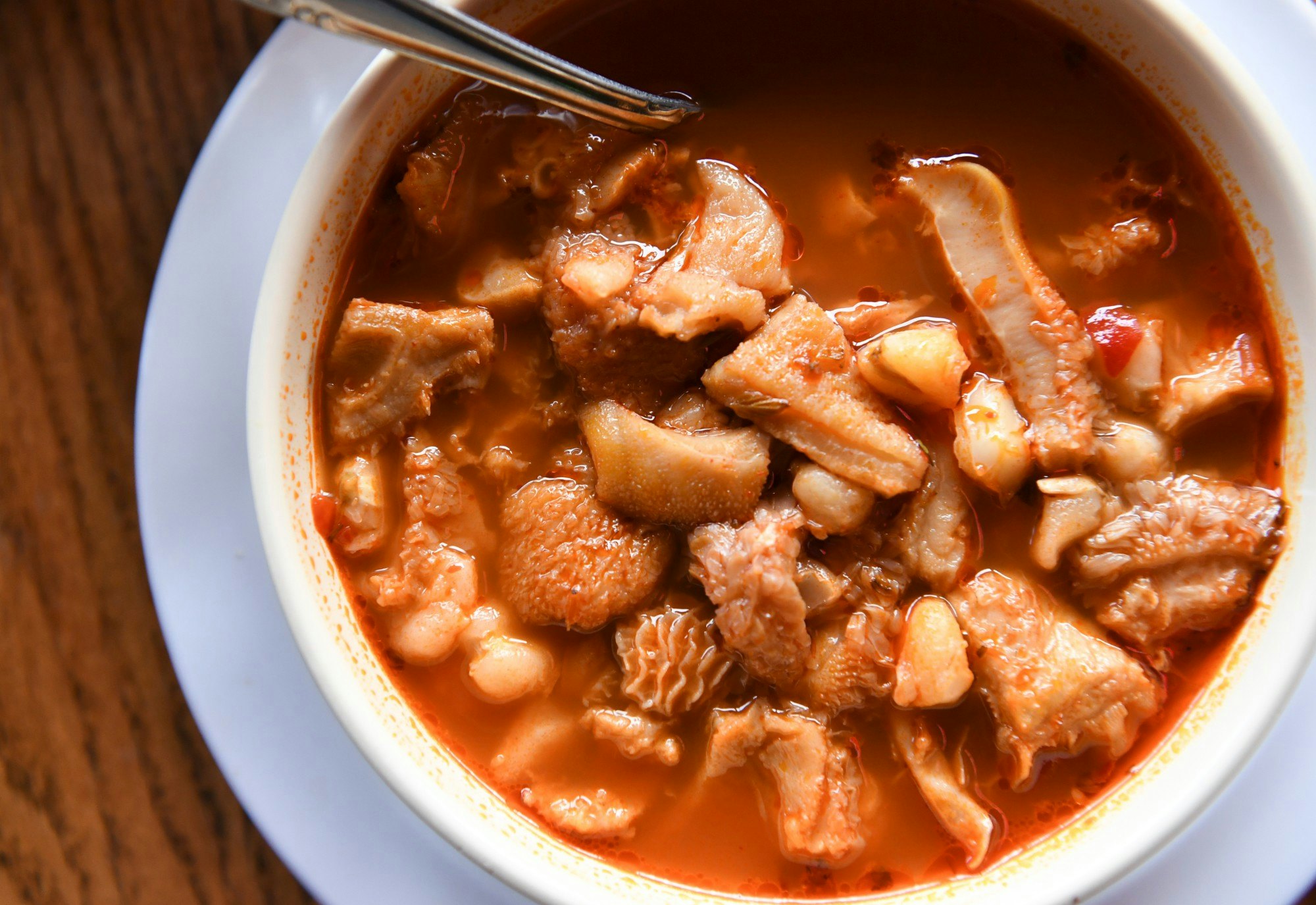 Fans of this spicy tripe (beef stomach) soup are convinced of its restorative powers. It’s not the quickest hangover cure you’ll stumble along as it take several hours to make, so it’s advisable to do like Mexican families, and start the vat bubbling the night of the party. Traditionally, the hearty savoury broth includes beef tripe, dried corn and dried chillies and is often topped with raw onion and dash of lime juice.