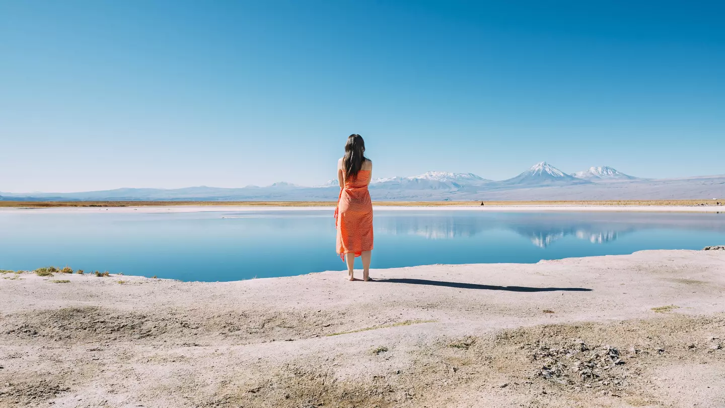 Chile, Atacama Desert, back view of woman standing on edge of Laguna Cejar. Westend61 / Getty Images