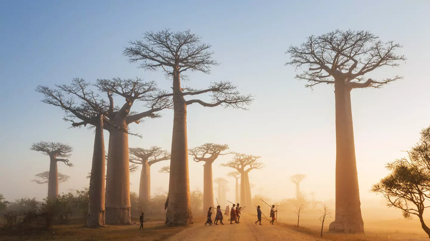 Mist shrouding the Avenue of the Baobabs at dawn. Justin Foulkes / Lonely Planet