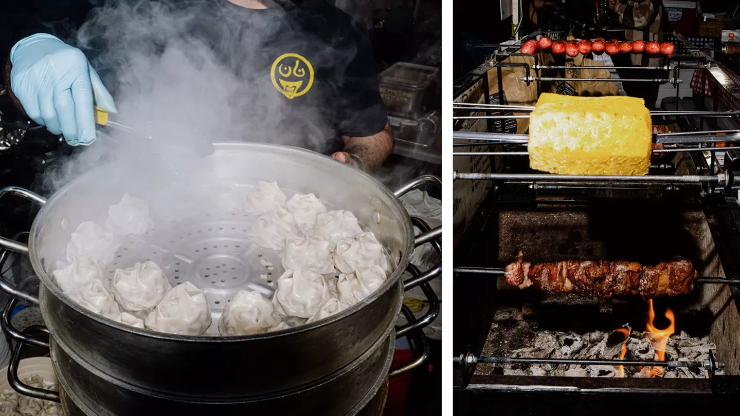 Left: Afghan mantu at Nansense; Right: Brazilian churrasco at Misterbocadillos. Brian Bills via Queens Night Market