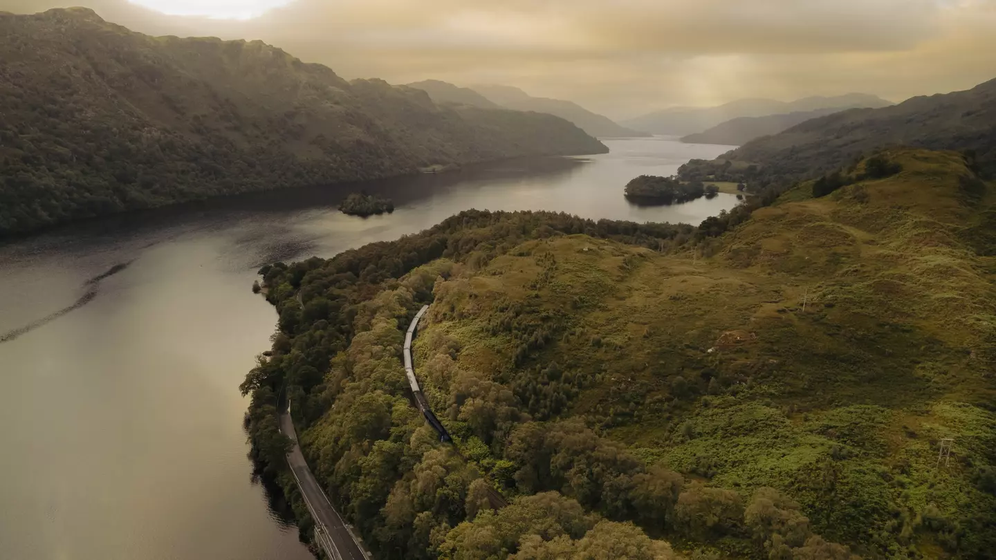 The Caledonian Sleeper crawls past Loch Lomond in Scotland. Caledonian Sleeper