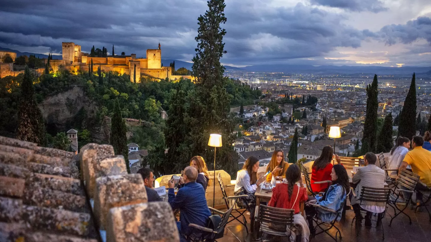 Experience sunset in Granada overlooking the illuminated Alhambra palace. Sergi Reboredo/VWPics/Universal Images Group/Getty Images