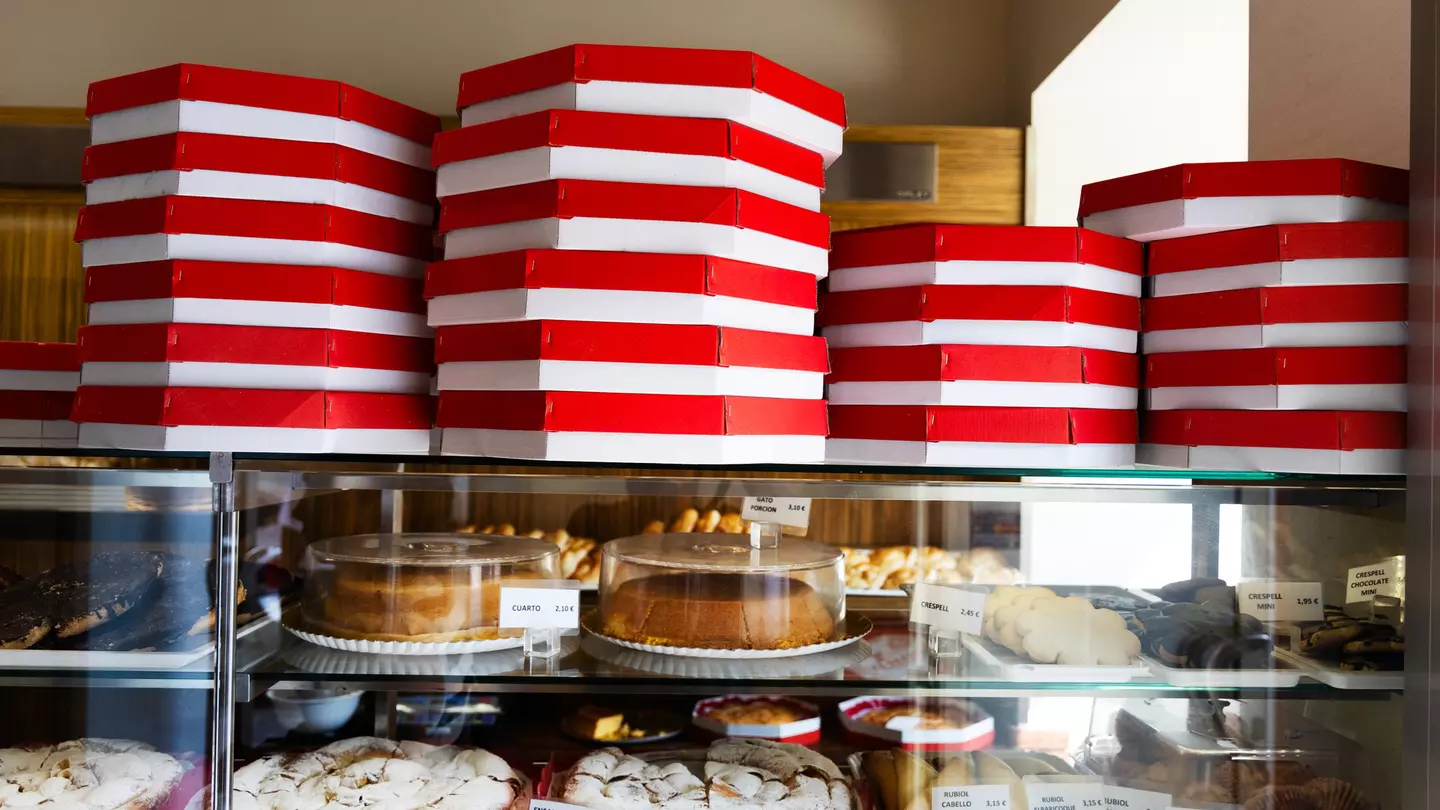 Boxes of ensaïmadas and other treats stacked in a local bakery, ready for customers in Palma de Mallorca. Felipe Santibañez for Lonely Planet