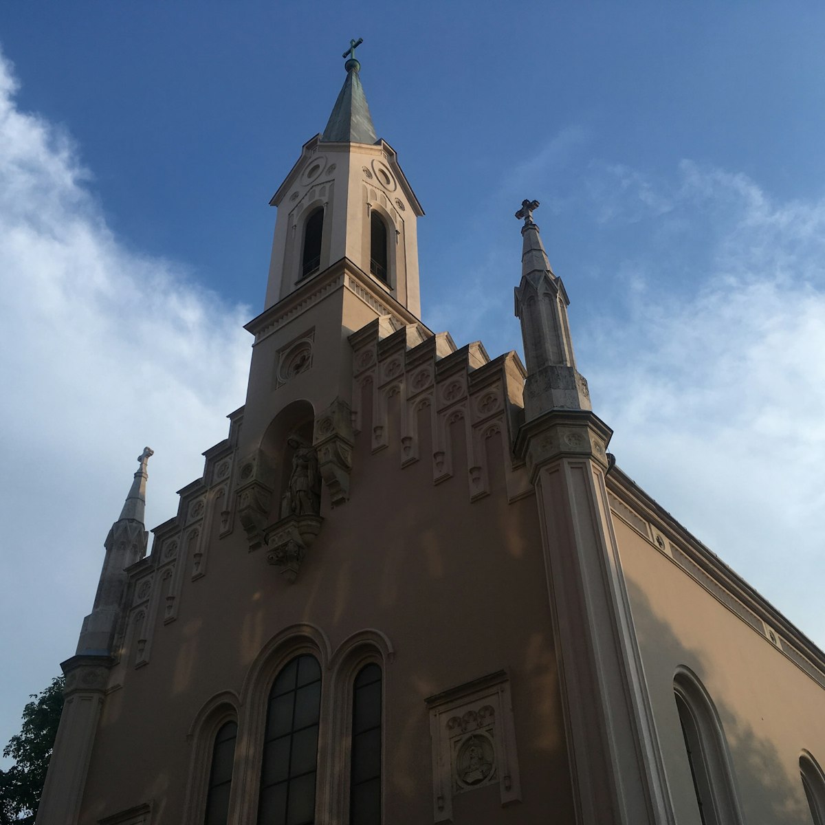 The big steeple on the south side of Kapisztrán tér, opposite the Museum of Military History and visible for kilometres to the west of Castle Hill, is the…