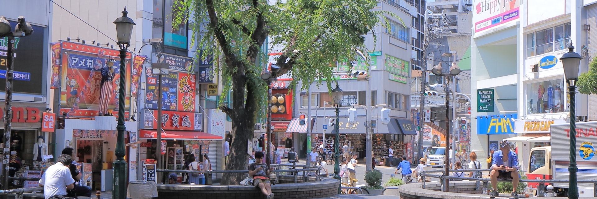 In the middle of Ame-Mura is Triangle Park, an all-concrete 'park' with benches for sitting and watching the fashion parade. Come night, it's a popular gathering spot.