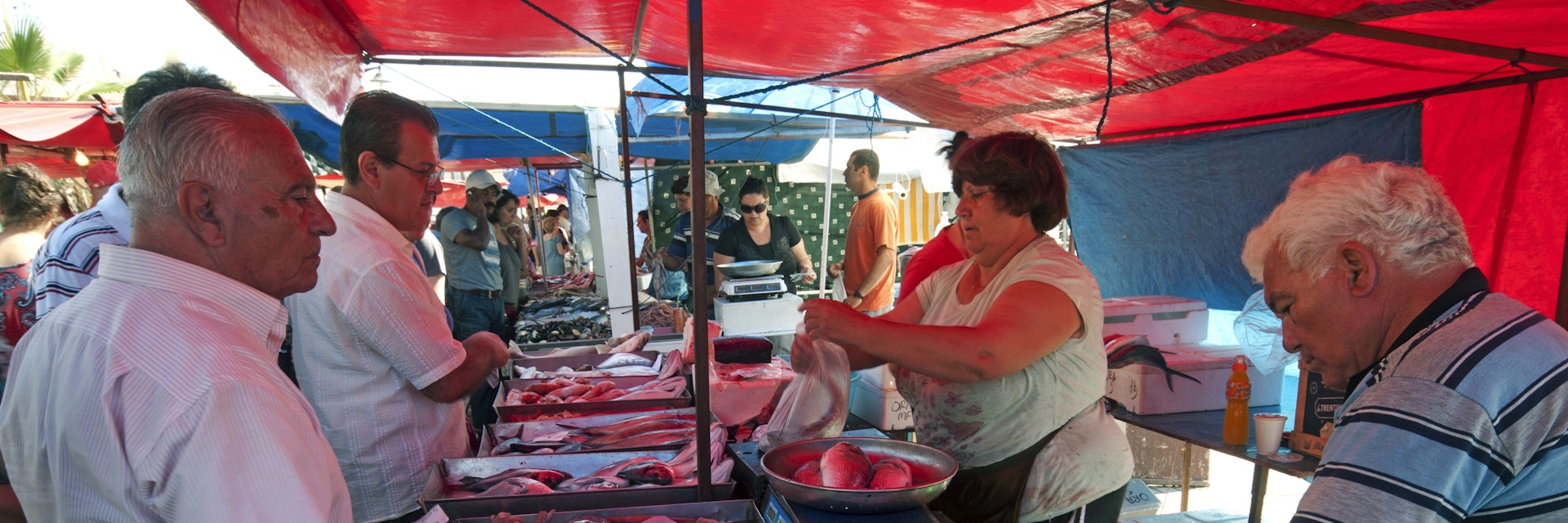 The Sunday fish stalls are far outnumbered by the stalls of this daily market, which mainly sells kitsch aimed at tour groups visiting the town.