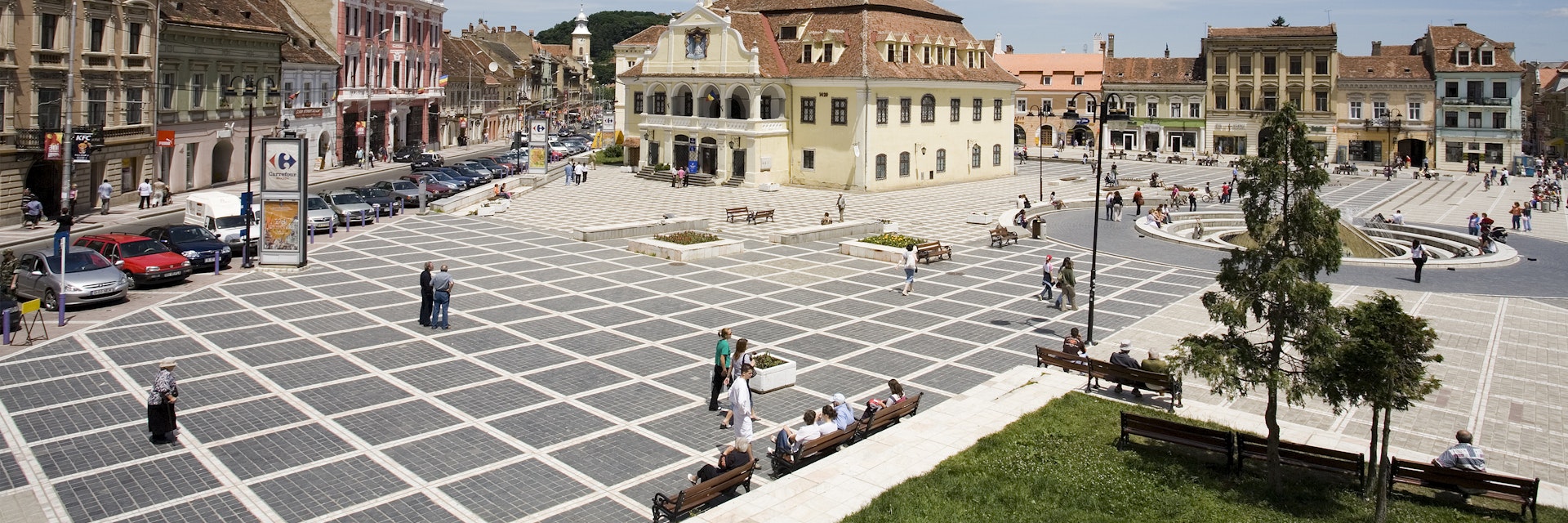 This wide square, lined with cafes, was once the heart of medieval Braşov. In the centre stands the 1420 Council House (Casa Sfatului), topped by the Trumpeter's Tower, in which town councillors would meet. These days at midday, traditionally costumed musicians appear at the top of the tower like figures in a Swiss clock.