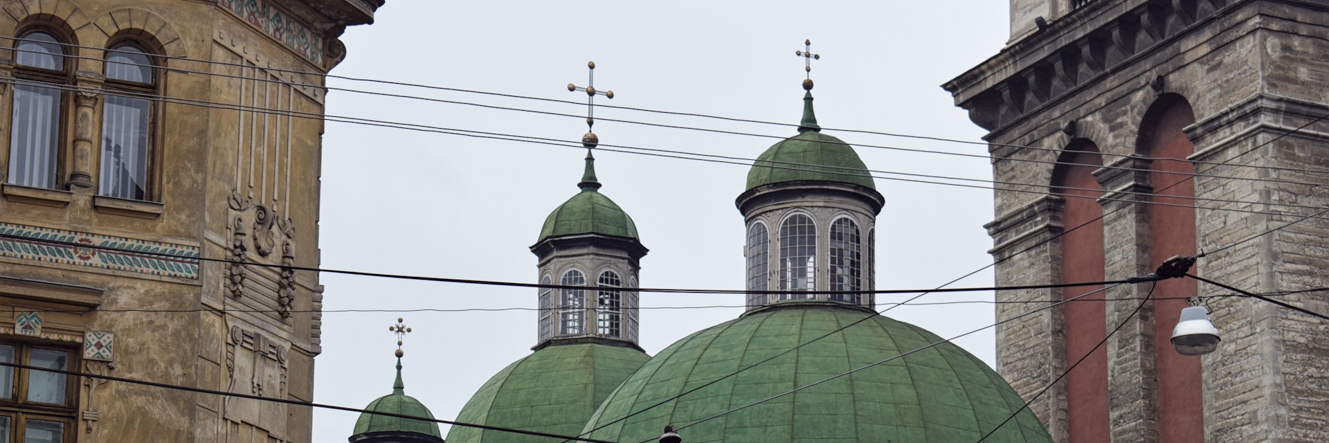 This Ukrainian Orthodox church is easily distinguished by the 65m-high, triple-tiered Kornyakt bell tower rising beside it. The tower was named after its Greek benefactor, a merchant who was also the original owner of Kornyakt House on pl Rynok. Sadly it cannot be climbed. It’s well worth going inside the church to see the beautifully gilt interior. Normally access is through the delightful Three Saints Chapel with its three, highly ornate minicupolas.